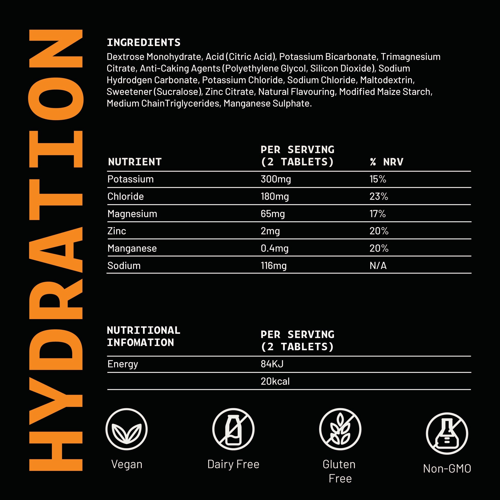 HIRO hydration tablets are a carefully formulated nutritional complex of electrolytes and minerals designed to support optimum hydration and muscle function.