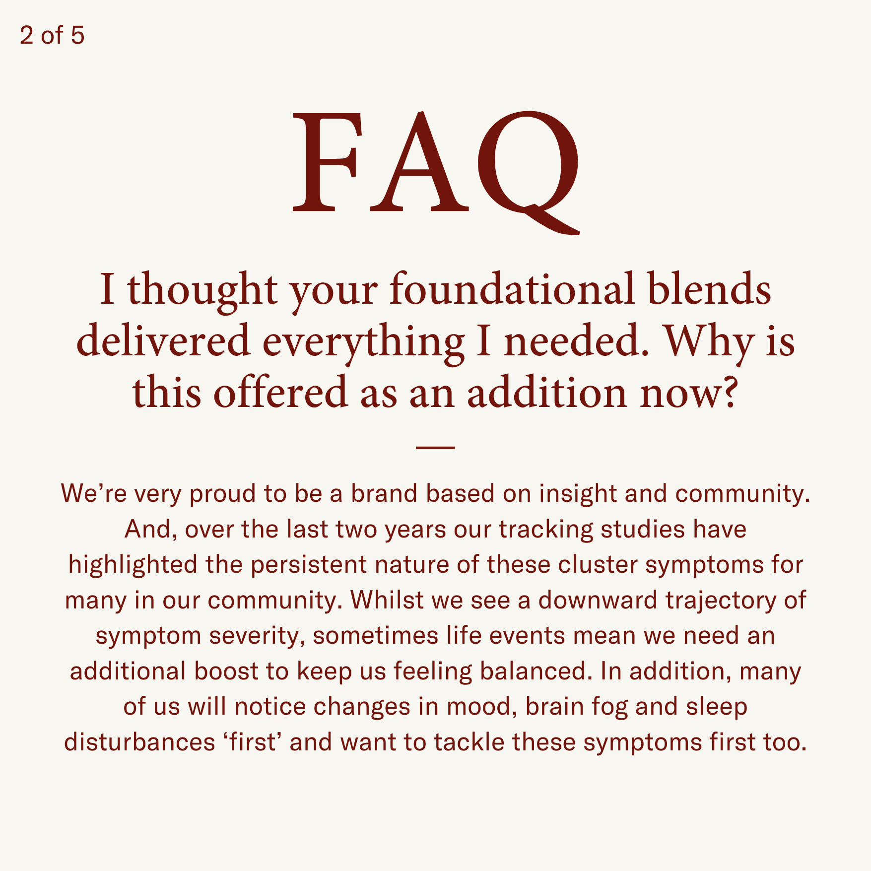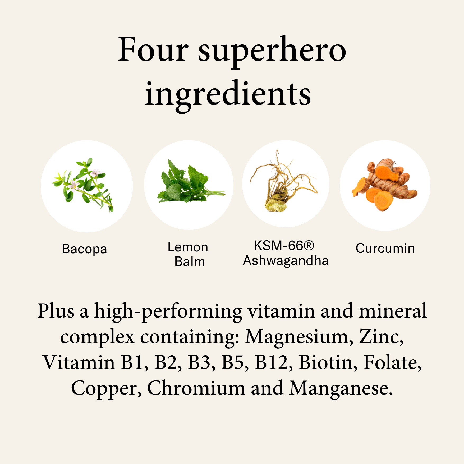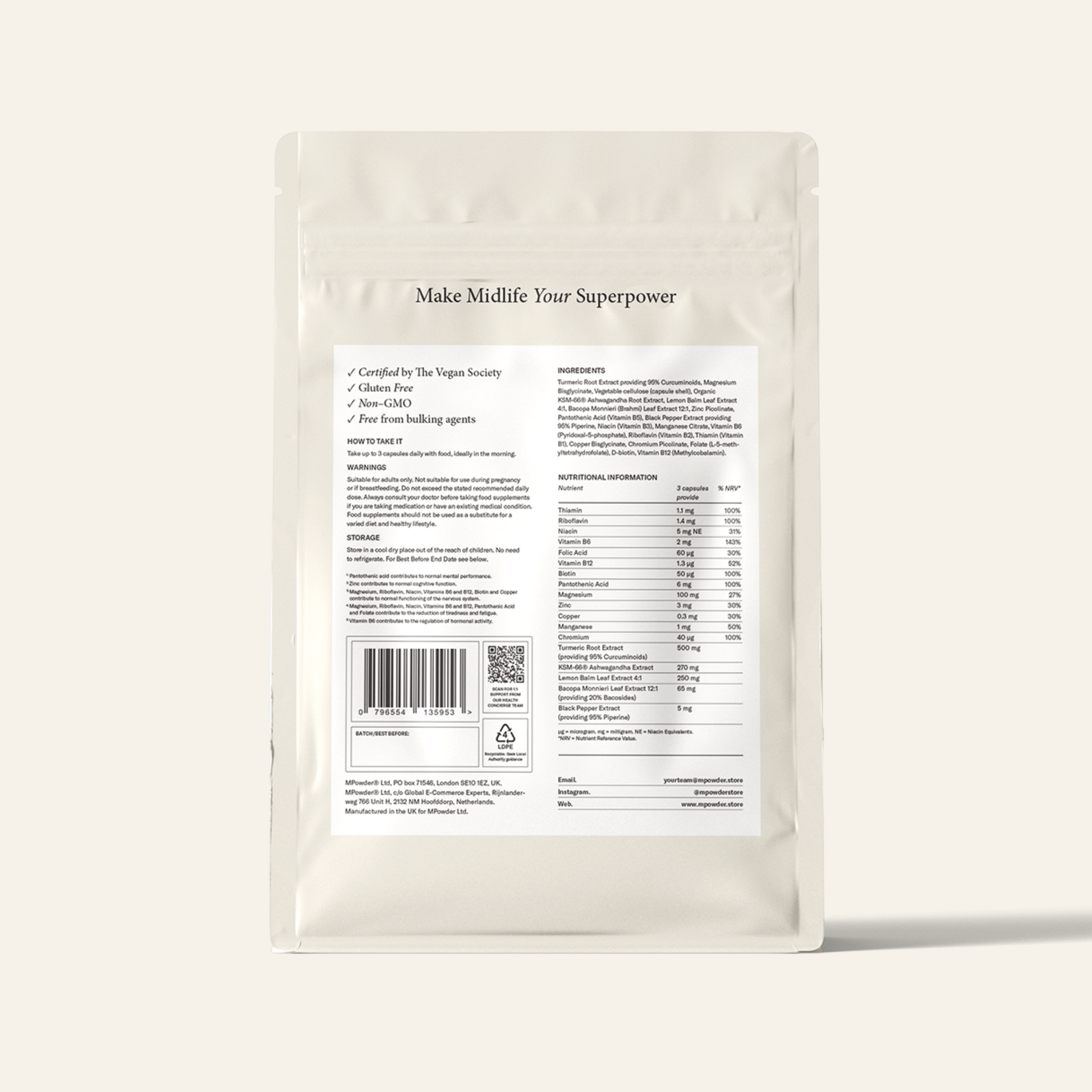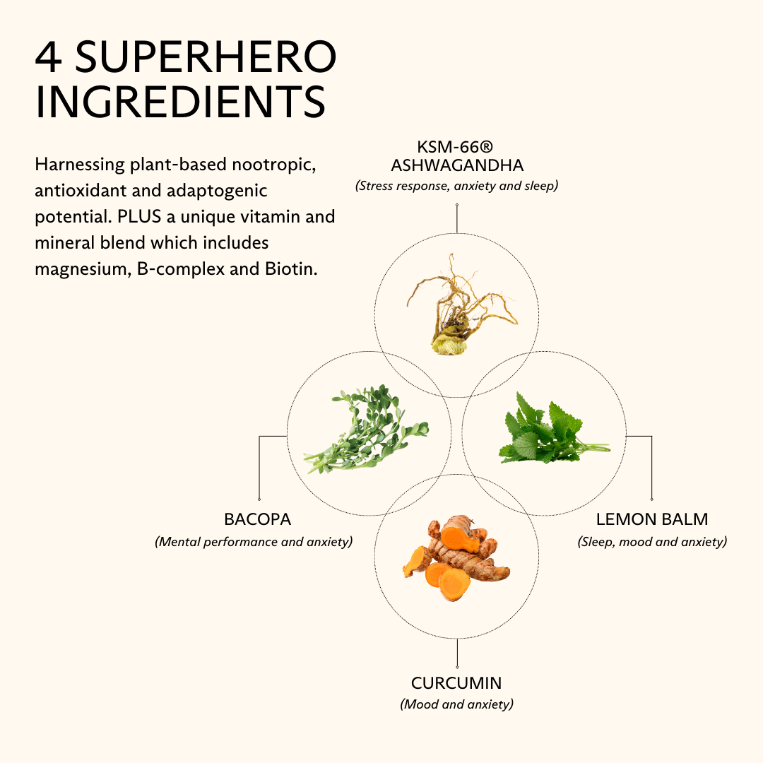 Smart science-backed formulation tackling mood, brain fog and sleep. This high-performing botanical blend of nootropics and adaptogens targets challenging symptoms that persist across your menopause journey.