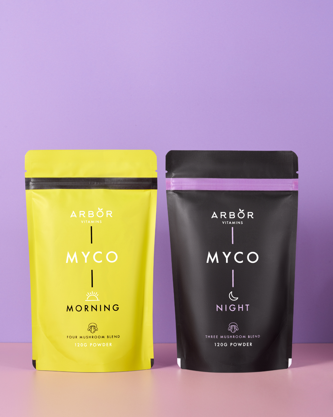 Introducing the MYCO Bundle containing the Arbor functional mushroom blends, MYCO Morning and MYCO Night. This duo is designed to support your wellness journey from morning until night with the benefits of 7 powerful functional mushrooms.