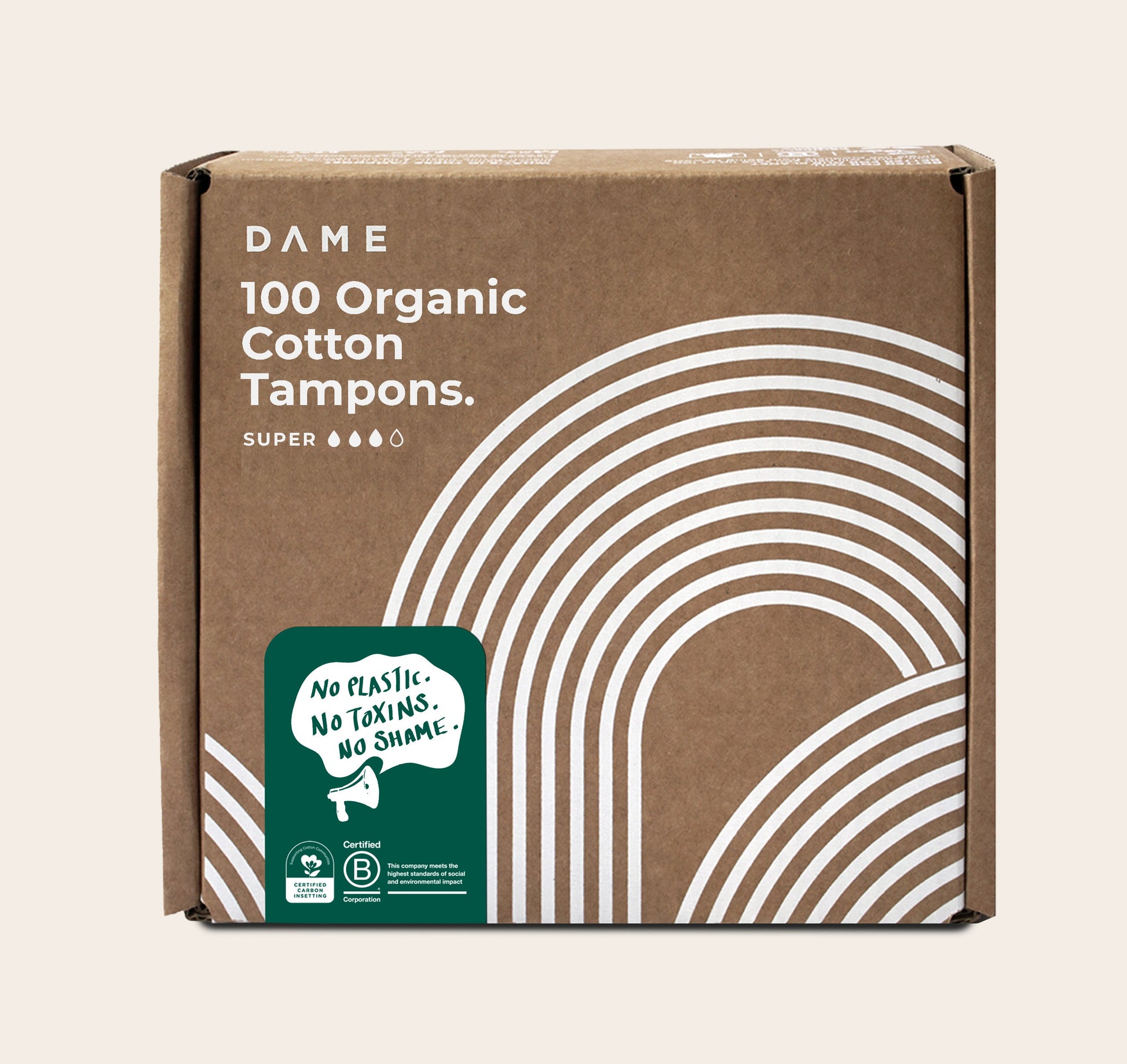 DAME tampons are made of 100% certified organic cotton and absolutely nothing else.