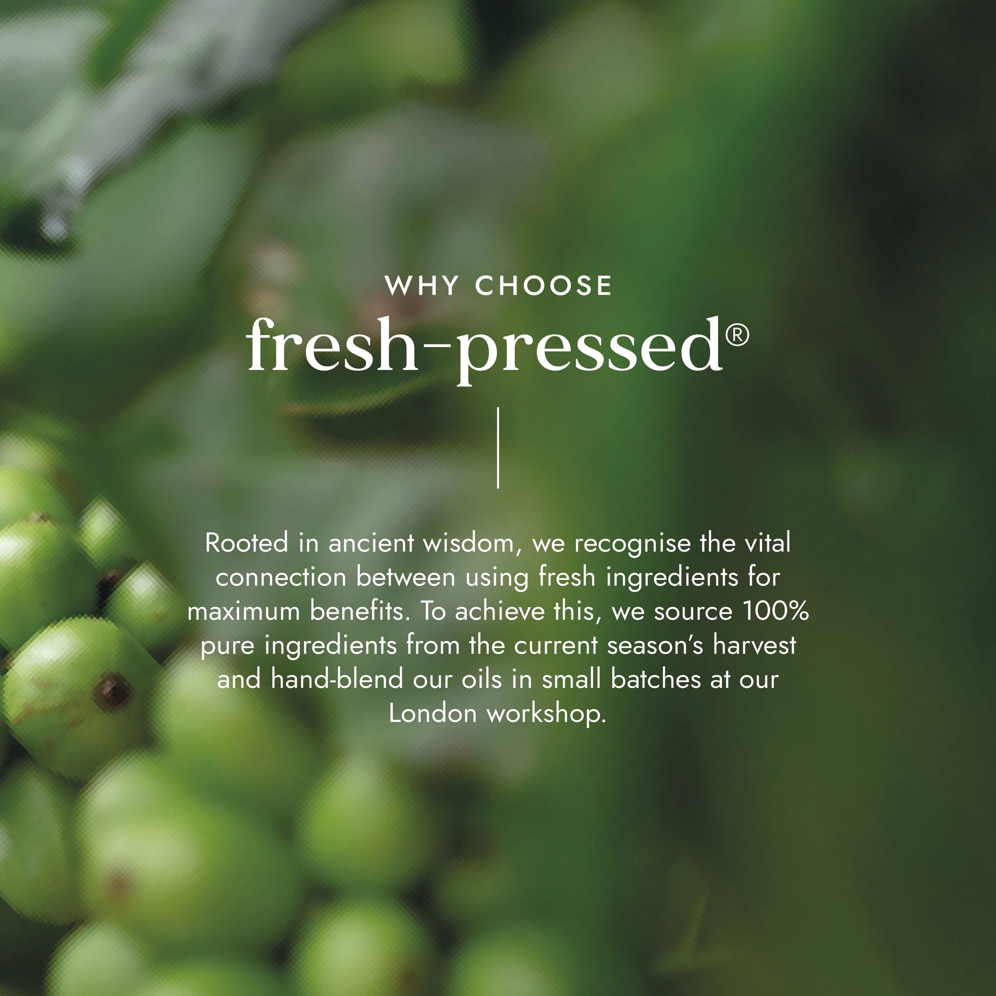 KEY INGREDIENTS: 100% pure blend of stimulating Fresh-Pressed® Oils - Green Coffee Bean, Hazelnut & Wheatgerm Oils & Fresh-Ground® energising Gotu Kola Herb. - TARGETS: Thighs, hips & bottom, any uneven skin tone and lumpy skin. Massage regular for best results.